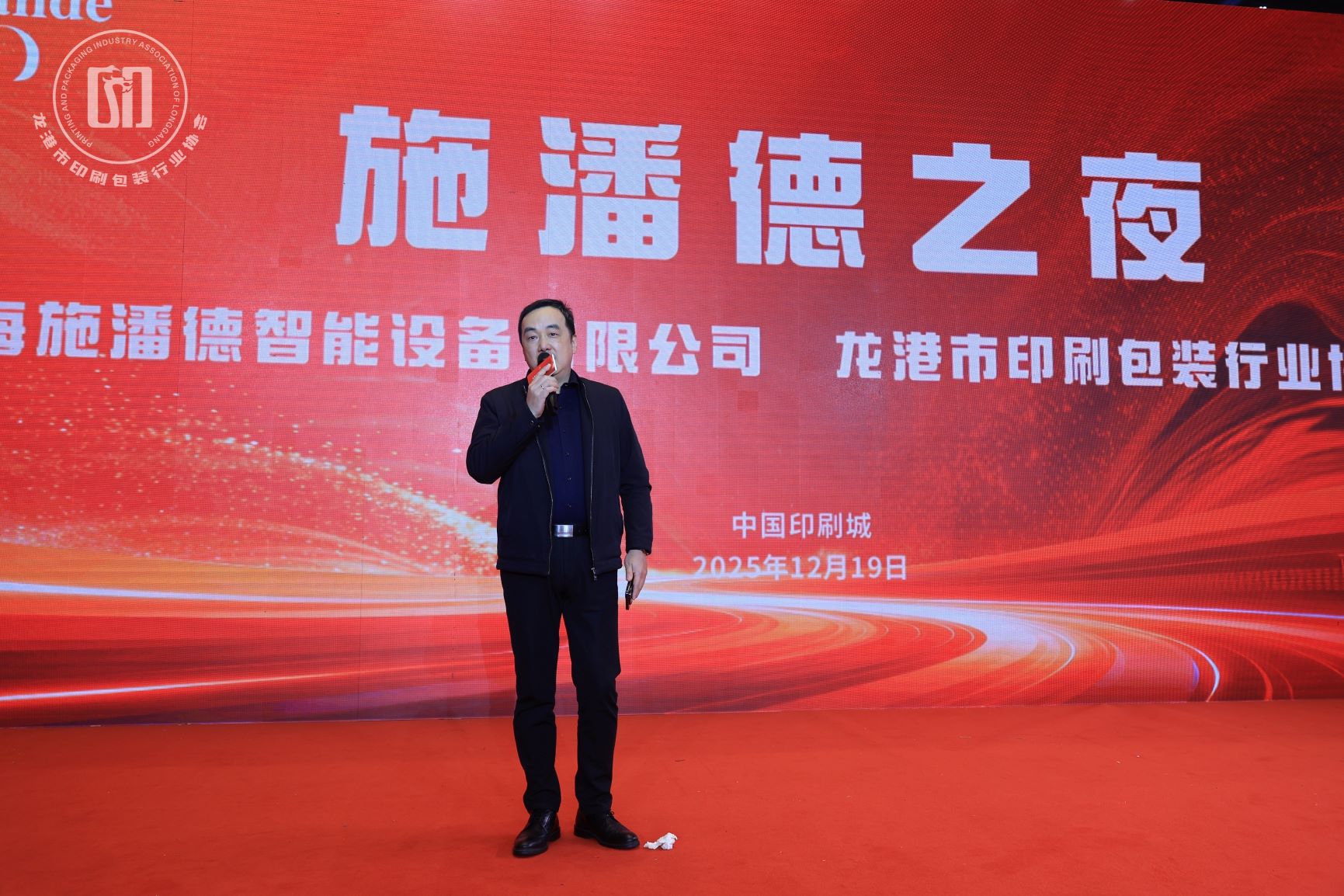 晚宴伊始,上海施潘德智能设备有限公司副总经理任志伟先生登台致辞。他首先对龙港印刷包装行业同仁们多年来深耕市场、精研技术的匠心精神表示由衷敬佩。龙港从业者从一纸蓝图到精美成品,从传统工艺到智能化升级,始终坚守品质,持续创新,共同铸就了“龙港印刷”这一闪亮的区域产业名片。